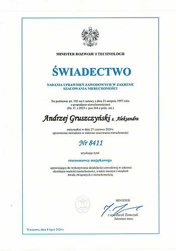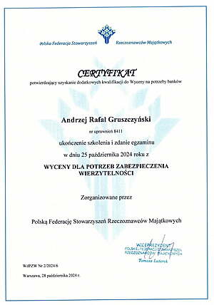 oraz studia podyplomowe w zakresie wyceny nieruchomości.